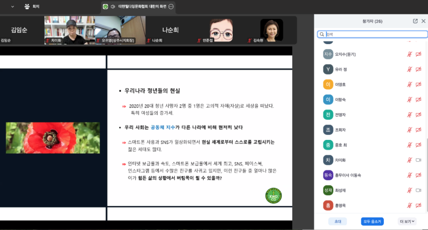 비대면 강의 ZOOM으로 신청자 35명 중 총25명이 참여하였습니다.