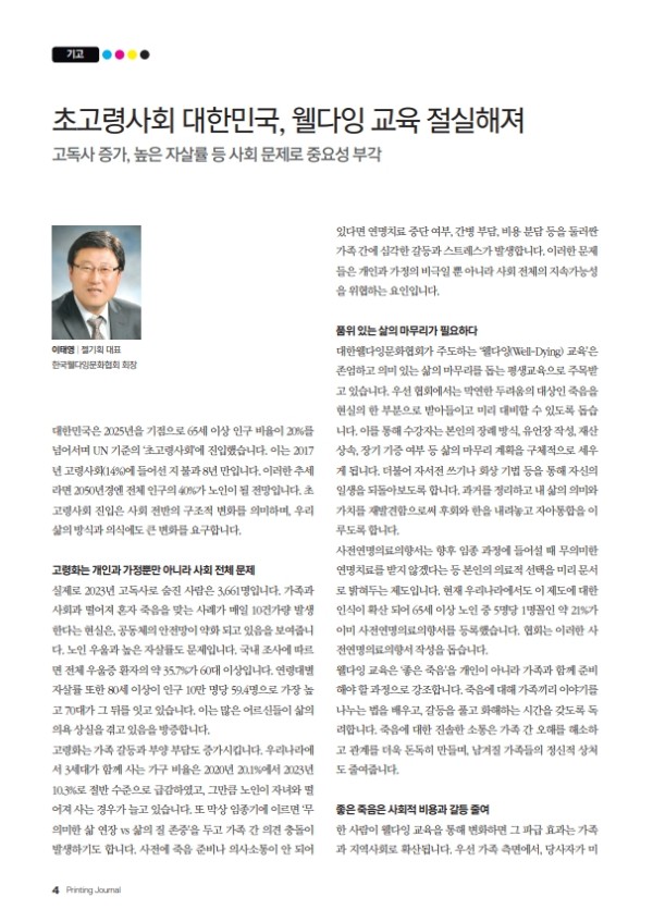 [대한웰다잉문화협회] 이태영 회장님의 '웰다잉 교육의 필요성'에 대한 기고문이